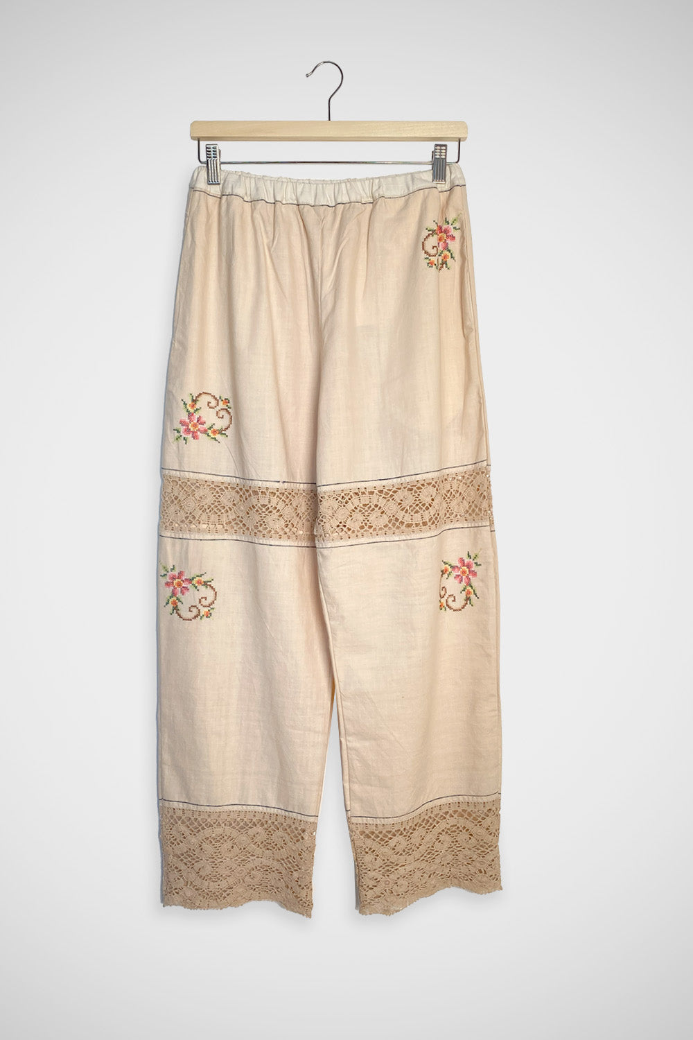 One of a kind trousers made from antique textile.